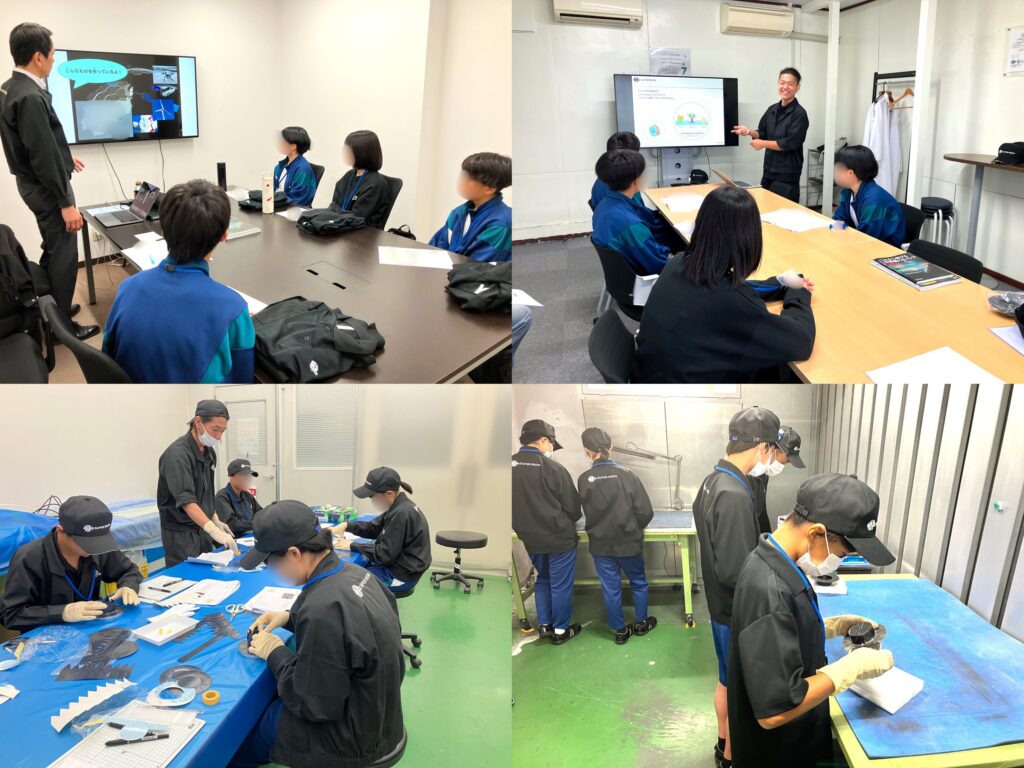 最初に、座学による会社紹介と工場見学を通じて、当社の事業内容やものづくりの現場について理解を深めていただきました。